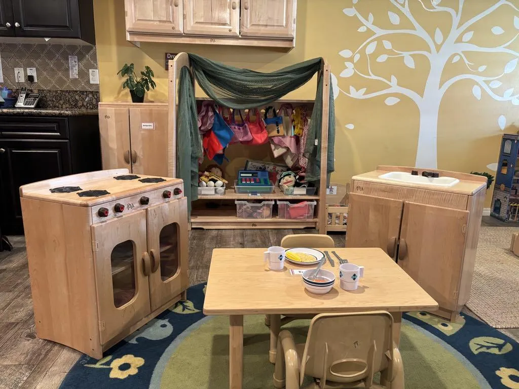 We follow California state learning guidelines but in a cozy home setting where kids ages 3-5 actually enjoy learning. Your preschooler gets structured lessons in early literacy, math problem solving, and school readiness but through play-based activities, not boring worksheets. They learn letters while baking pretend cookies in our play kitchen, count blocks while building towers with friends, and practice writing their name because they want to sign their artwork.